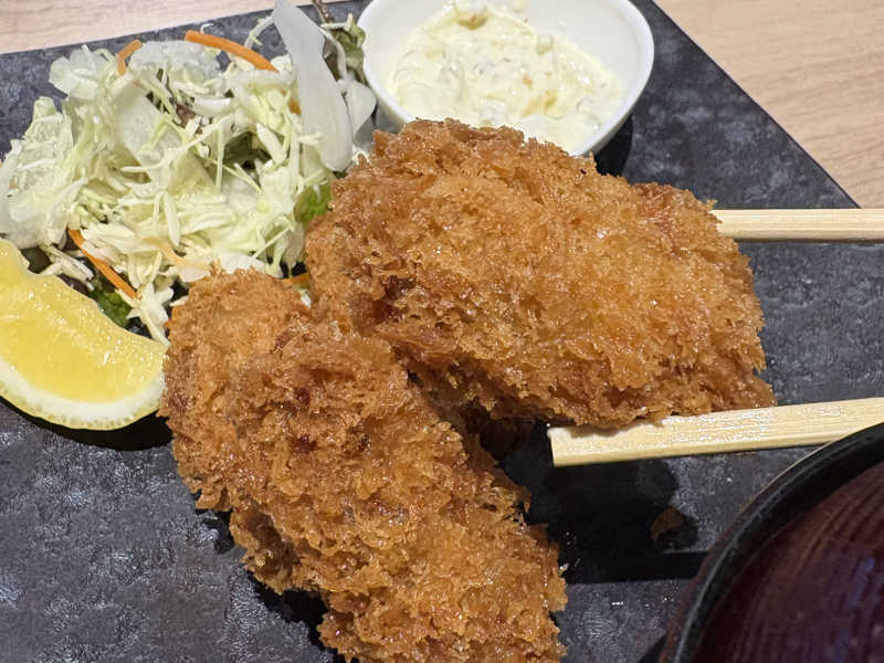 単品のカキフライにご飯セットを頼んで、カキフライ定食にしました!