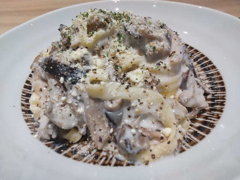 あの乙さんも認めたクリームパスタ✨めちゃウマ🙆ただ現代の科学をもってしても大盛には出来ませんでした😅