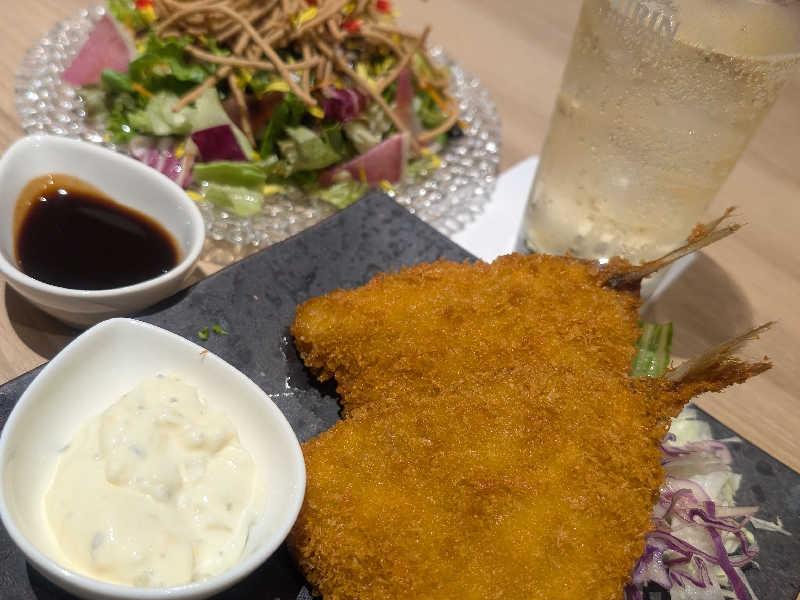 アジを揚げたものと草と水分