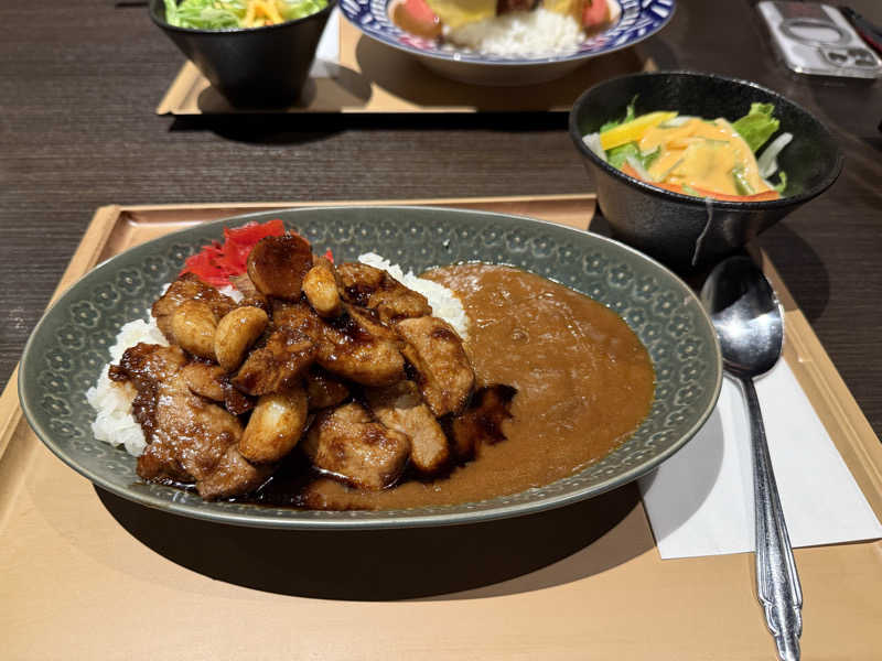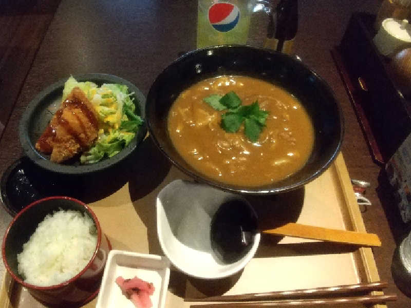 お昼ごはん。 湯楽の里、喜楽里のレストランは、どこもカレーうどんを推してますね。