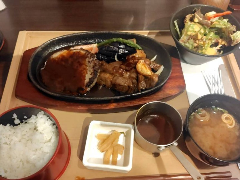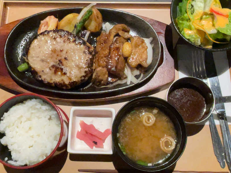 ハンバーグもトンテキもうまー✨ 付け合わせの野菜まで丁寧に考えられてて感動!