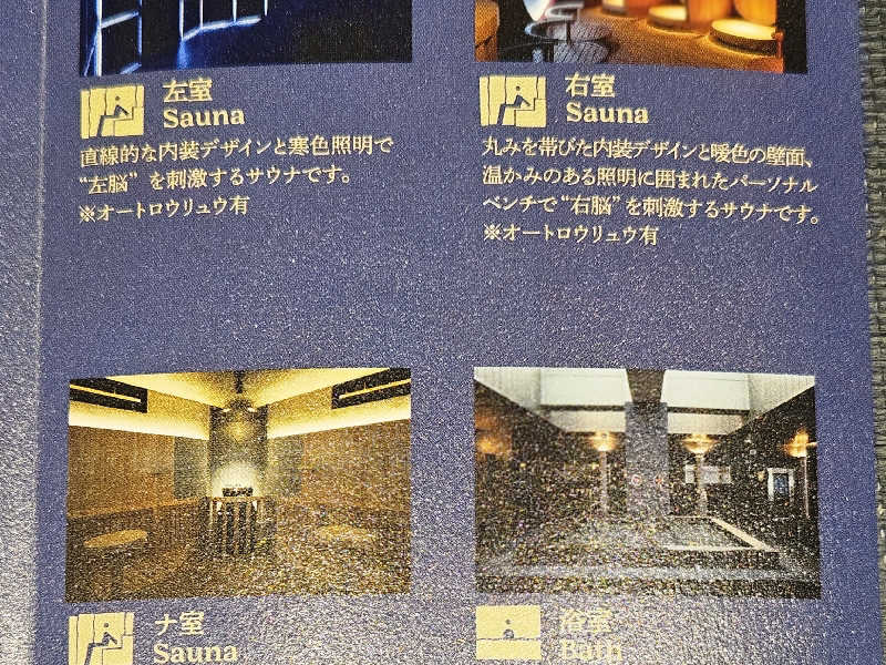 【左室】 直線的な内装デザインと 寒色照明で ❝左脳❞を刺激するサウナです。 ※オートロウリュウ有
