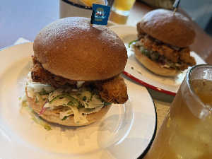 そしてやっぱりクラフトビール🍺 フライド豆腐バーガーも美味しい😋