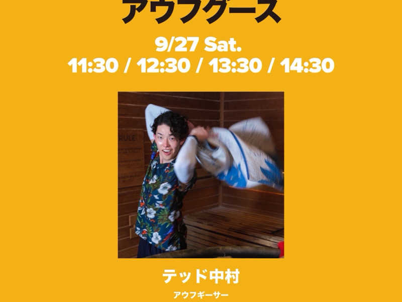 11時30分、12時30分テッド中村さん、この施設で初めてのアウフグースイベントらしく、なんと運が良かった。ドコモサウナ部の部長さんでテッドはミドルネームでハワイ出身の日系2世とのことでした。テーマは公園であっていたランニングイベントにちなんでホノルルマラソン。笑いをとりながら、しっかり熱波を送ってくれる大好きなタイプでした。また機会があれば受けたいですね。