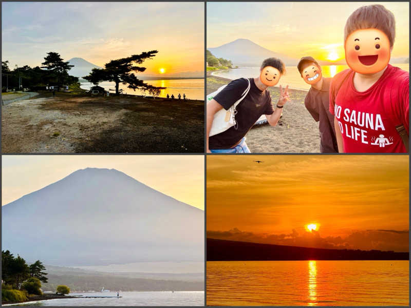 第2回サウナ遠征!!ということで今回はサウナ部でサウナ遠征に行ってまいりました! しご終わでそのまままずはコンビニで集合したら定時で上がってすぐ行く約束したのに…サウナ部のみんなはもちろん定時で帰ることはなく…渋々残業笑 予定より30分くらい?遅れていざ出発!! 車で走らせて3時間!笑仕事で疲れとる中着いた所は山梨県!山中湖!!そうです。サウナ遠征の為にまさかの前泊爆笑 サウナにかけすぎなんよ俺ら笑笑