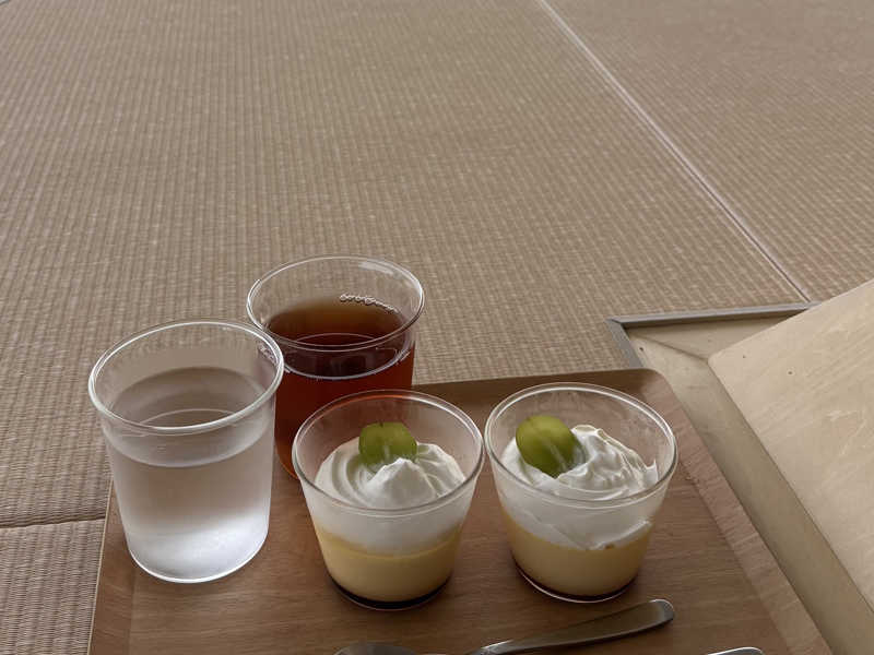 サウナ後の甘い物って美味しいんですね。畳の上で足を投げ出して食べるプリン、最高です!