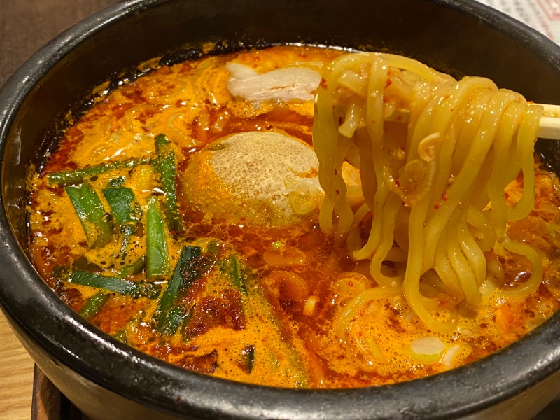 井上勝正さん監修。太麺が辛いスープに合って美味い!ケルケスストーンに見立てたジャガイモがポイント