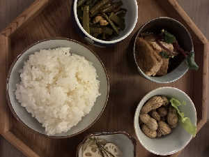 自然派の小鉢料理。ご飯は単品で注文。新米入ってます。
