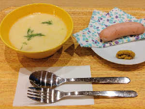ベリーソースでいただくのが新鮮!ミニサーモンスープもつけた