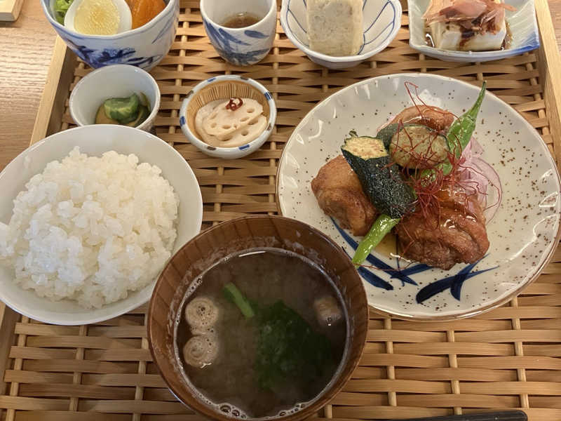 自然派の小鉢料理。ご飯は単品で注文。新米入ってます。