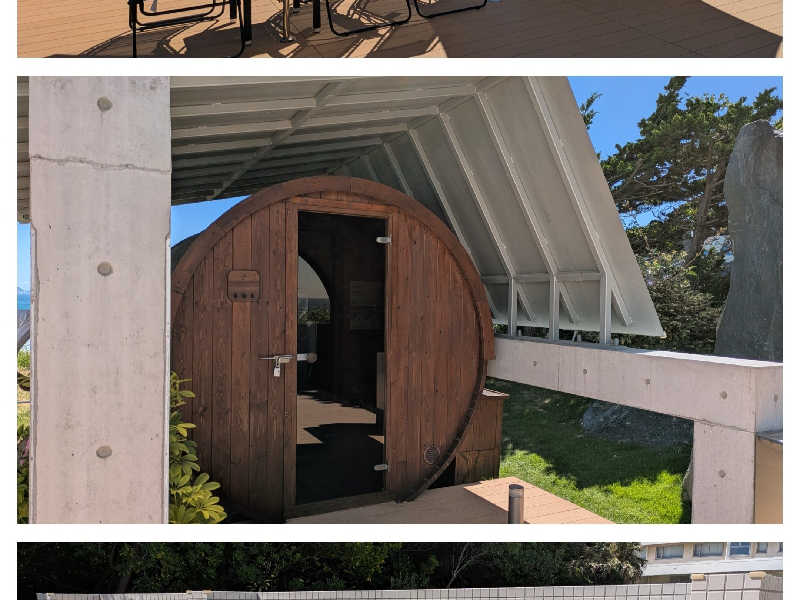 サウナ区画はサウナ以外もしっかりと作られており満足度が高く、何より素晴らしいのはインフィニティチェアから見える横に広がる海岸線と海から吹き抜ける風。