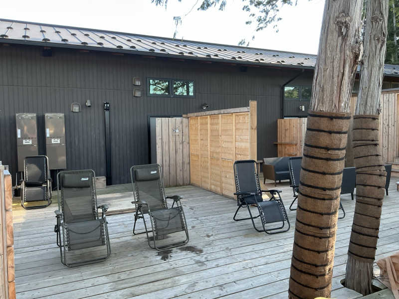 受付済ませて水着に着替えて会場へ。なんと貸切状態😳薪ストーブのサウナには既に火が灯ってて早速焼かれていく。薪も自分で足してくスタイルで結構本格的。温度計さほど高くない気はするがかなりアツアツ🔥🪵ロウリュもすれば5分も入れないレベルだ。アロマではないが薪の香りがまた良い感じ🙆水風呂はかなり深いしなんかヒバみたいな良い香り😌体が慣れれば五分位浸かってられる。外気浴もこの空気の良い空間を独り占めできるのが最高すぎる…3時間は長いかなあと思ったけどあっという間だった。家から少し車を走らせてこれほど素晴らしいサウナを楽しめる場所を発見できて最高だ☺️モヤモヤした気持ちも多少吹っ飛んだかも。