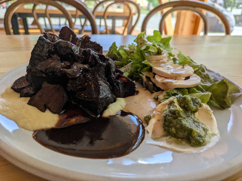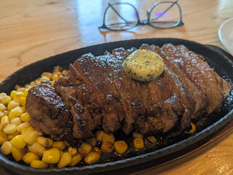 自分は先週から決めてた〇〇牛(忘れた🤣)のランプ肉のステーキランチ🥩特製ソースと相性バッチリでんめがった〜😋😋😋
