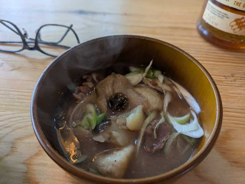 スタッフさんと一緒に昼飯😋もらった芋煮は今までの人生で1番美味かった😋