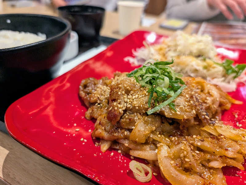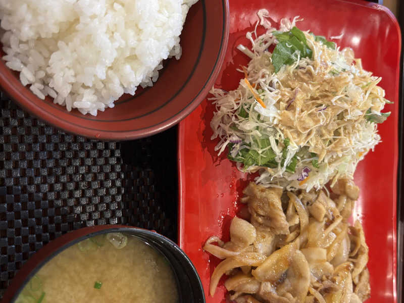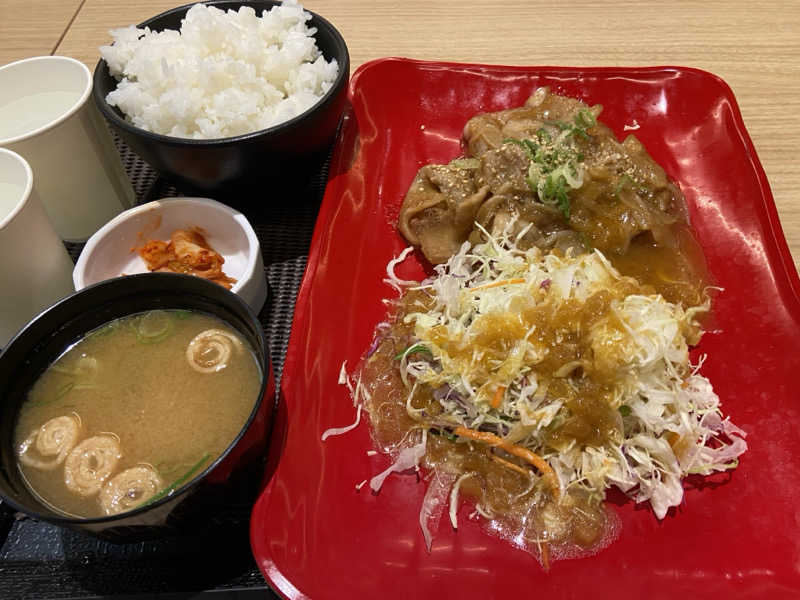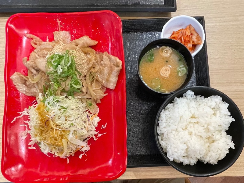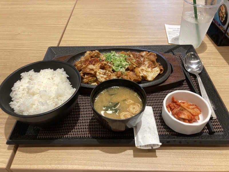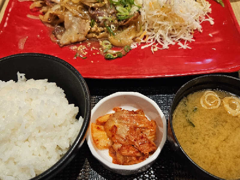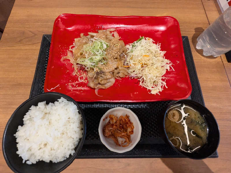 にんにくの香りがサウナ後に食欲をかき立てる美味しい定食でした♡ 今日はキムチがついてきたな。