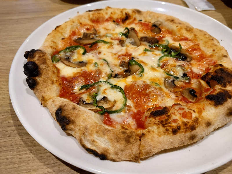 薄めの生地にフレッシュな味わいのトマトソース、表面のコゲの香ばしさが相まって、もう美味い!