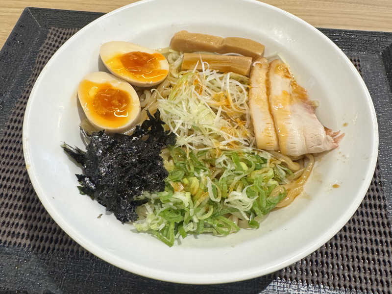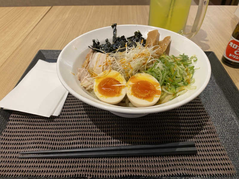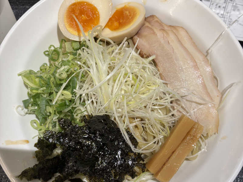 ガッツリ混ぜて、底に溜まったツユを麺に絡ませる🍜 ぶっとくてコリコリのメンマがウマい😋