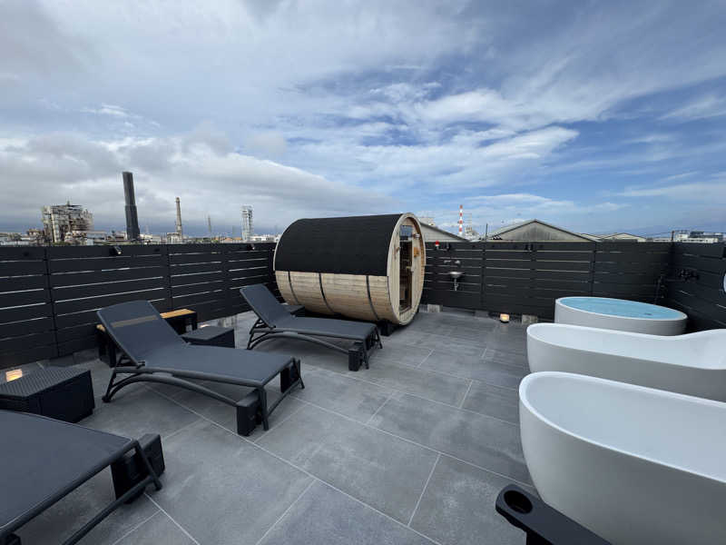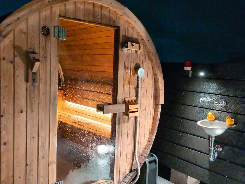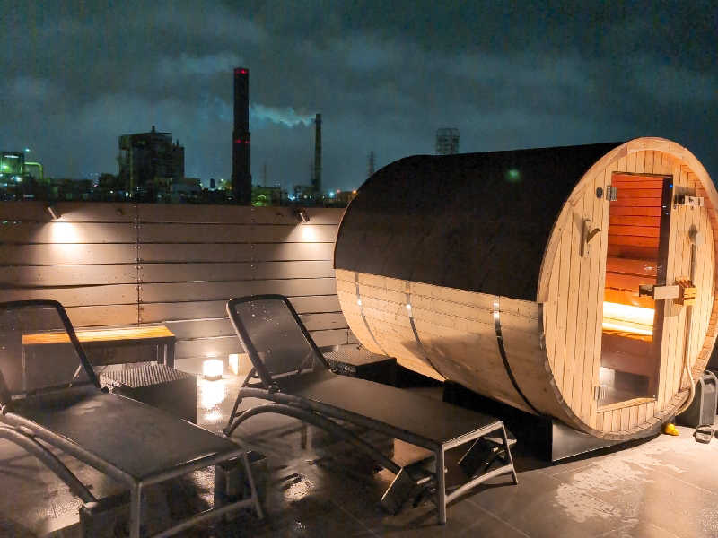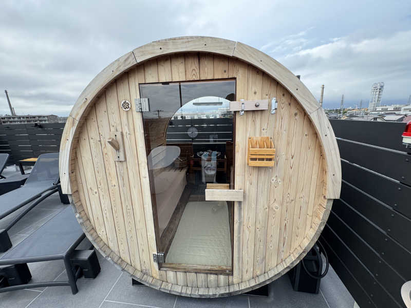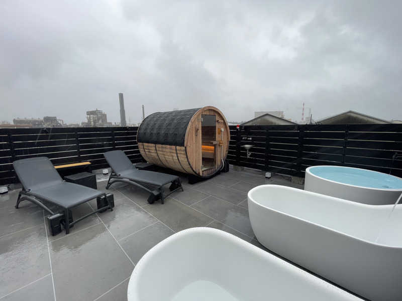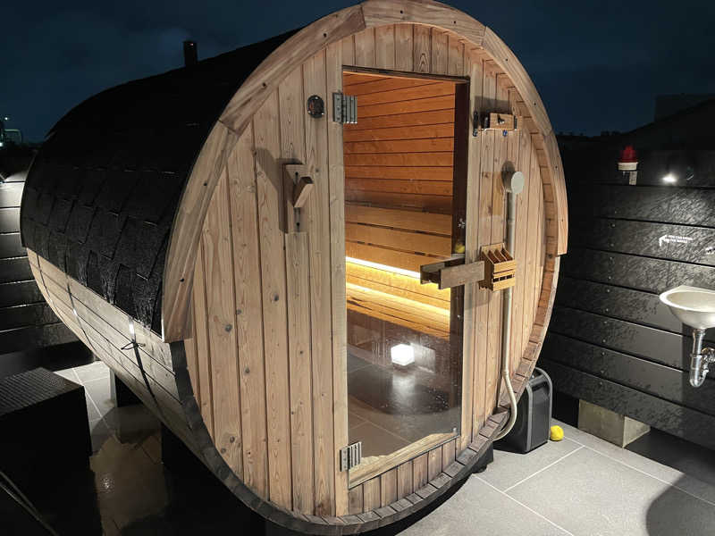 宿泊者のみ利用できる屋上バレルサウナ🪵