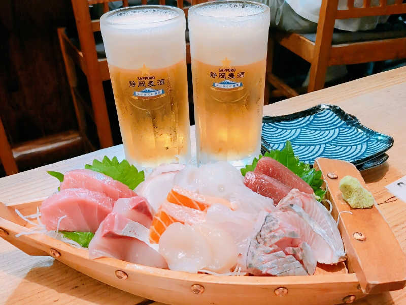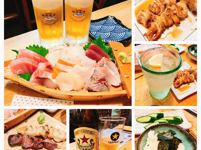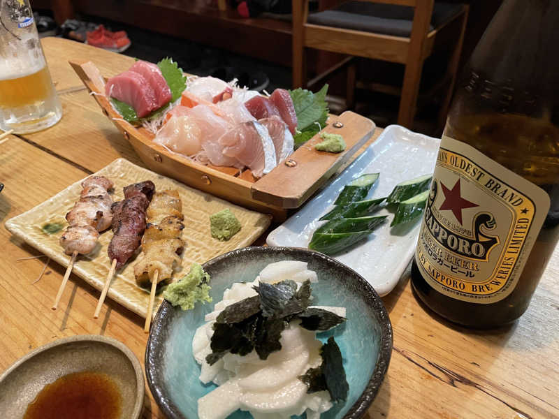 刺身盛り合わせ、長芋の千切り、軍鶏3種盛りなどをモリモリ楽しくいただいた