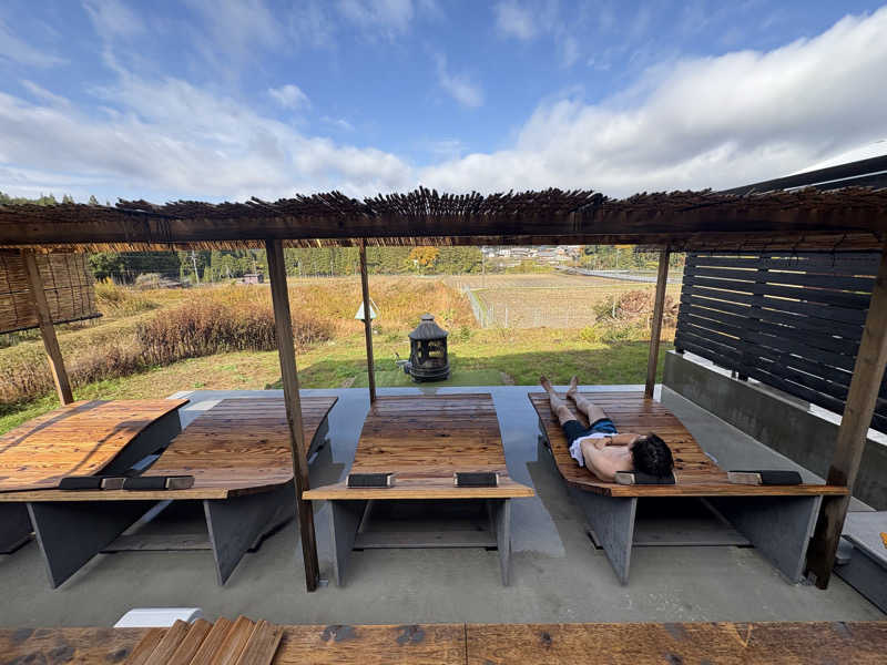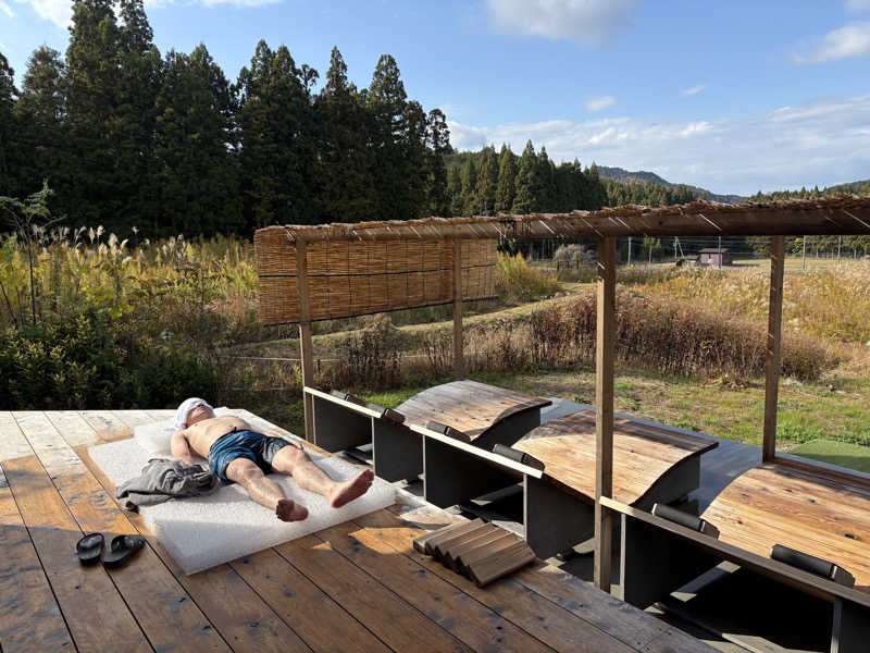 外気浴はXやサウナイキタイで景色を知っていたので楽しみだったが、画像で想像してた以上に大自然開放的。そして今日の天気も良かったのもあり、最高の外気浴空間♪
