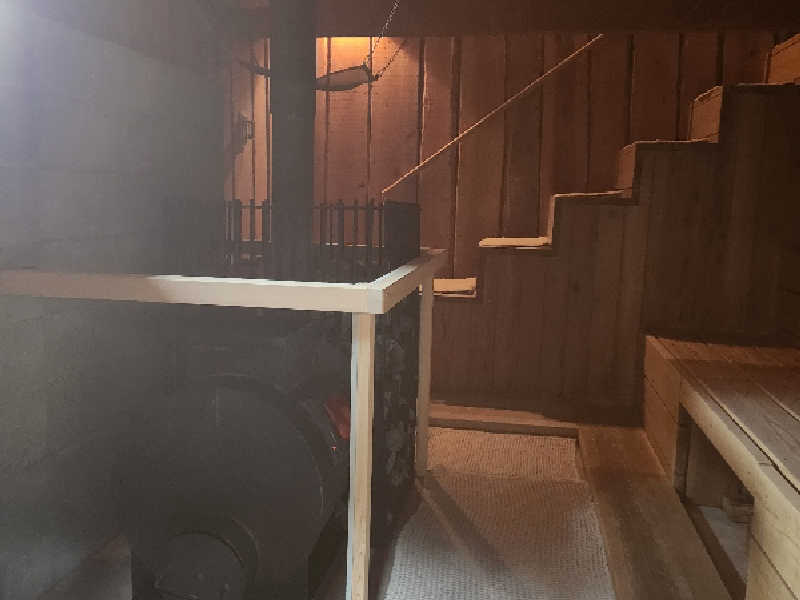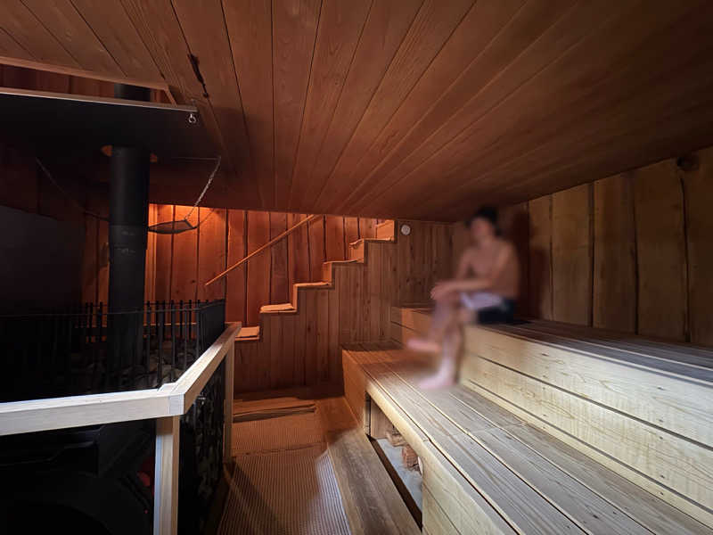 しかし実際ドガサウナに着くと、外観から溢れる秘密基地感に興奮!さらにサウナ室は薪サウナで二階建て。薄暗い空間に一つの小窓から温かい日差しが入る、最高のリラックス空間♪2階は寝転びスペースになっており、岩盤浴のようなくつろぎ方ができる。薪サウナは温度低くなりがちで、ここの薪サウナも80℃だが湿度調整が良いのかしっかりと熱い!なのに全く息苦しくないからストレスフリーで完全リラックスできる。この快適さは、20代女性2人組が10分くらい楽しくお話ししてることが証明している。