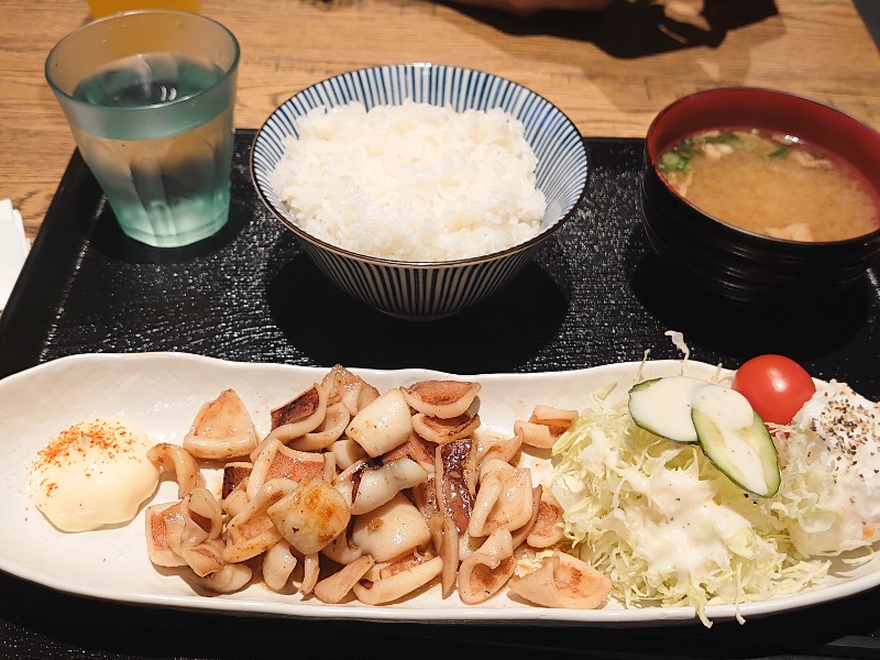 単品でいか焼き、ライス、味噌汁を注文し定食にしました😋