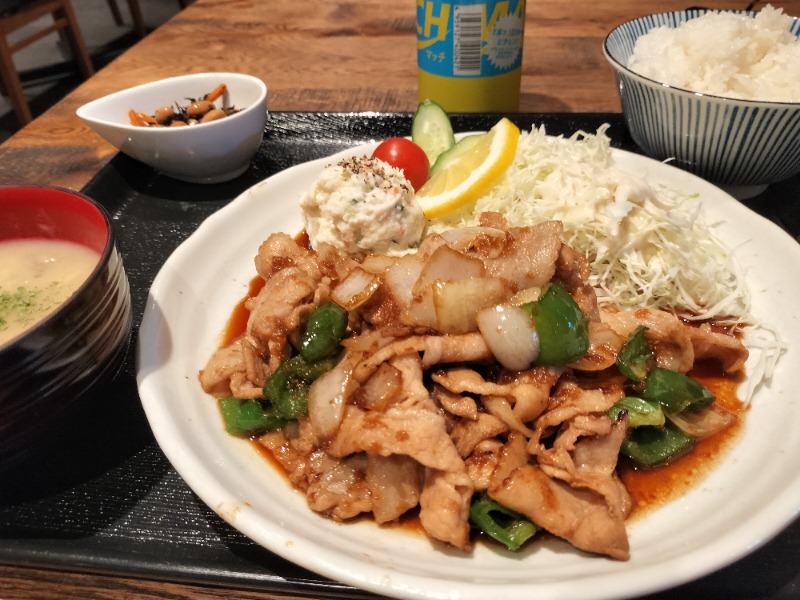 ピーマン切れちゃったからオマケしましたとサラダついて来ちゃうお心遣い®︎。目玉ダブルで急に豪華!
