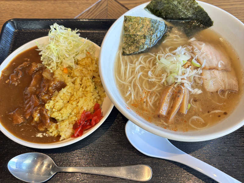🍜は麺もチャーシューも歯応えがあっておいしく汁はさっぱりしてて気持ちい カレーは言わずもがなサイコウ