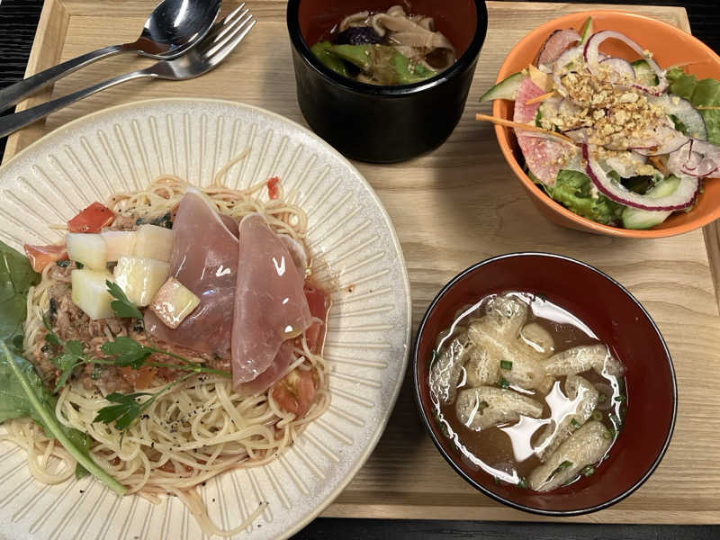 日替わり定食🍽️ 今日はキムチチャーハンと春巻きセット。ピリ辛がサウナ後によく合う😋