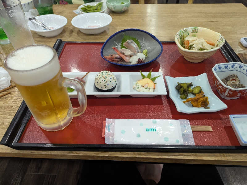 日替わり800円のセット 今日はヒレカツとアジフライがメイン オロポはメガジョッキサイズで400円