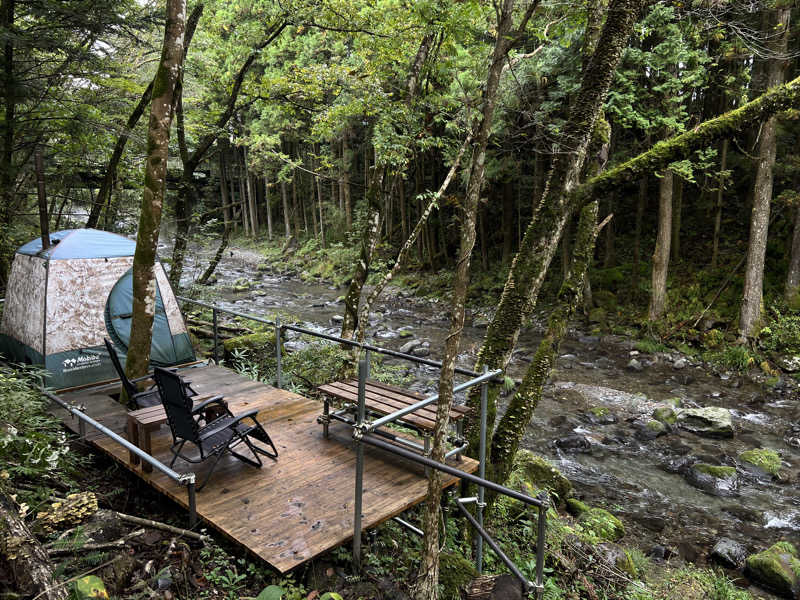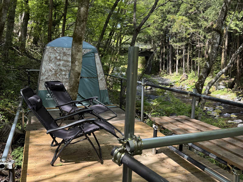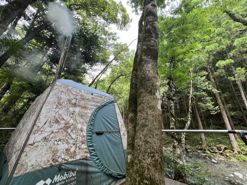 Fuji Camp Villageには川沿いのテントサウナと高い位置にあるサウナの2種。