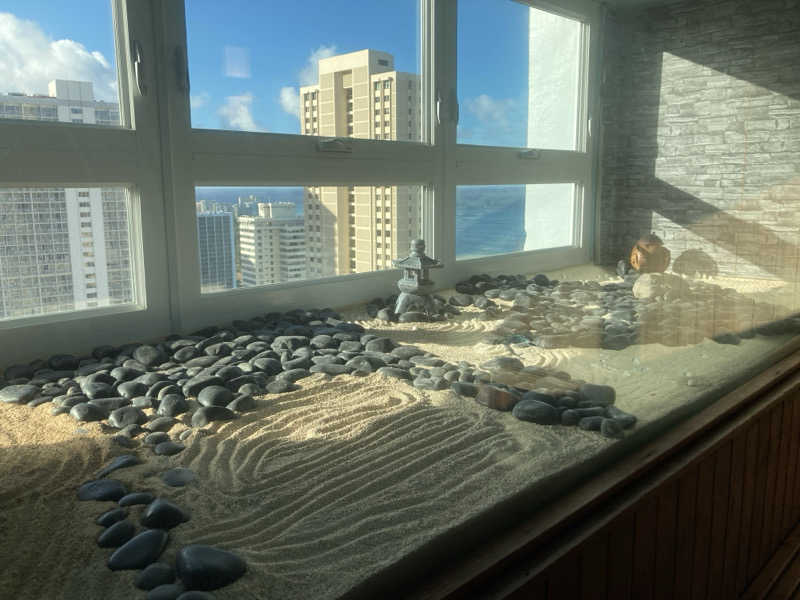 禅サウナという名称らしく窓の間に枯山水な装飾でその先にはダイヤモンドヘッド。眺望は良い。