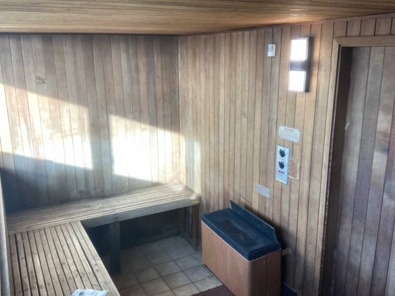 連泊なのでとりあえず朝に1セットしに行くと、こじんまりしたサ室の中にフィンランド製のタイマー式サウナストーブを発見。とりあえずオンにしますが、あったまるまで結構かかりそうな感じ。次回は電源入れて30分くらい経ってから入ると良いかも。