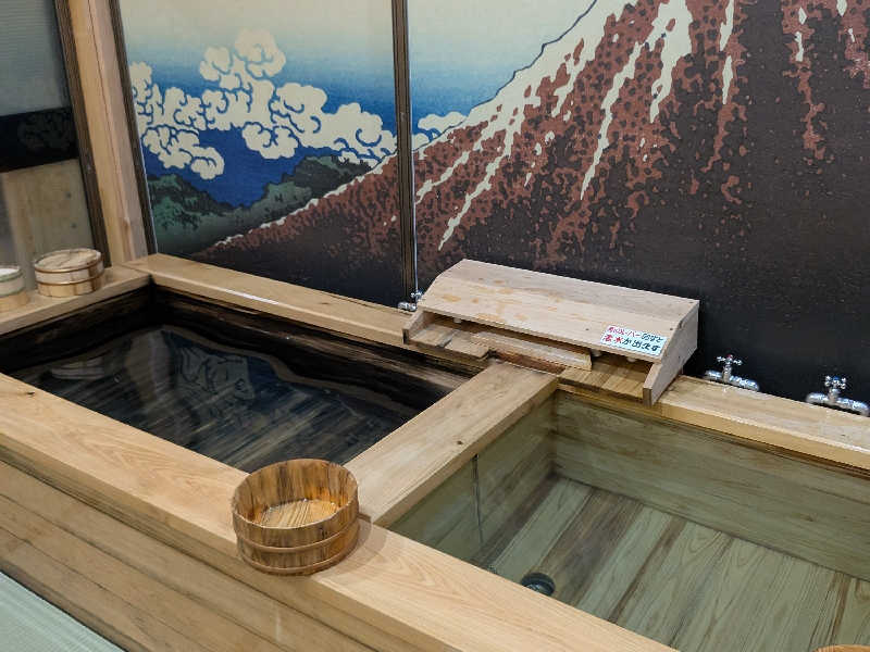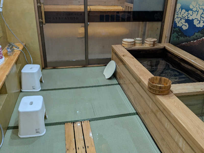 畳敷きという斬新なスタイル。泡が畳の上に流れることに罪悪感を覚えつつも、貸切ならではのリッチ感が勝り不思議な高揚感。