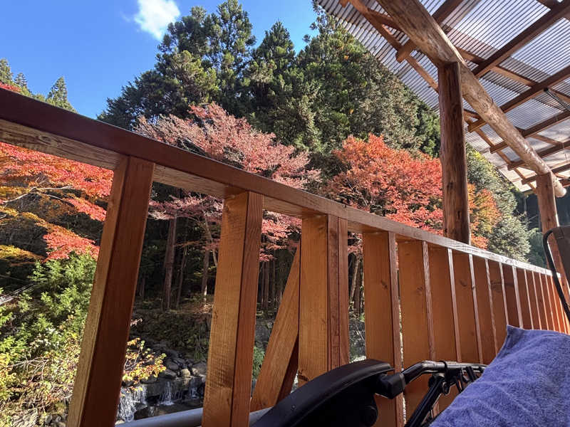 そこに広がるのは川のせせらぎと、赤や黄色に染まった紅葉と、青い空!最高のロケーション🍁