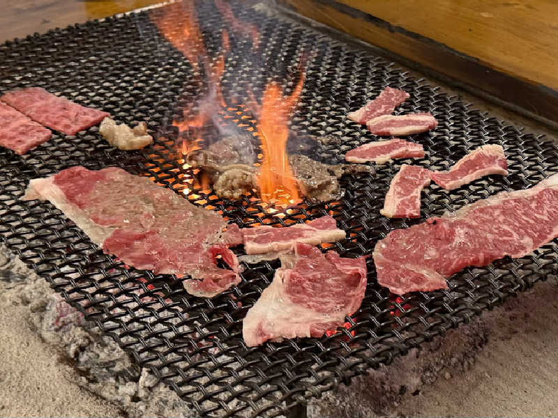 浴室で身体洗う為に11:40にサウナ室・水風呂の場所を離れ、洗髪洗体を済ませ目の前の休憩室で着替えて、隣のバーベキューハウスでサ飯(お昼ご飯)を食べました。