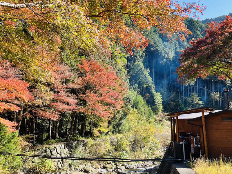 川の音をBGMに青空と紅葉を眺めて自然と一体化🏞️🍁