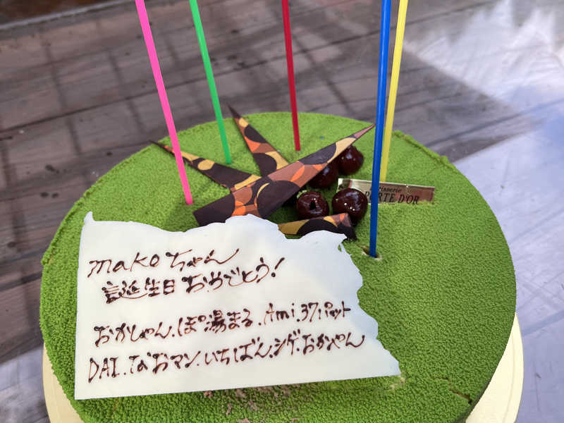 サ友makoちゃんの誕生日が重なるめでたい日、サプライズでケーキ🎂用意してお祝い。残念ながら現地参加できなかったぽ湯さんもTV電話で無事参加&ワチャワチャケーキタイム、