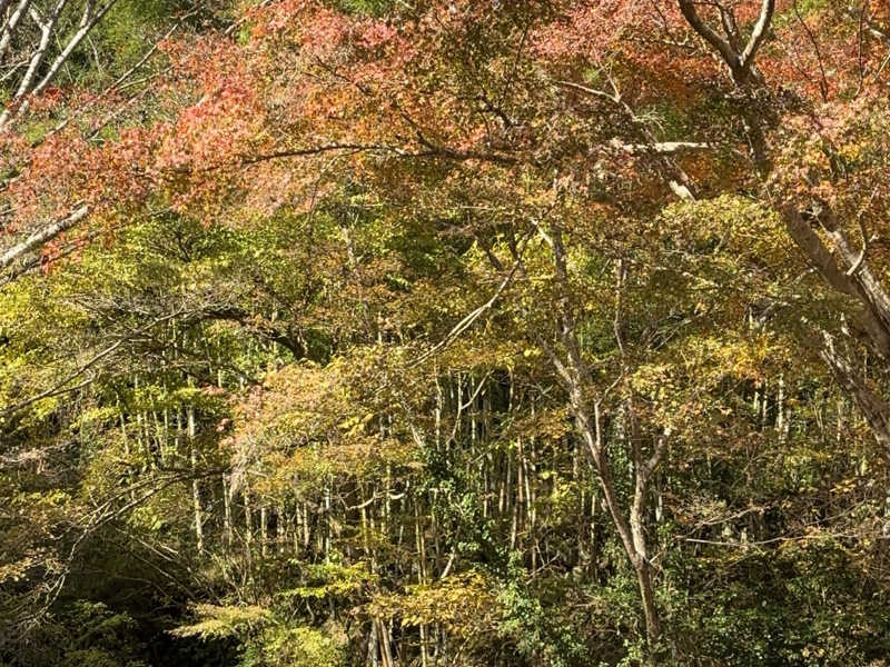 そこに広がるのは川のせせらぎと、赤や黄色に染まった紅葉と、青い空!最高のロケーション🍁