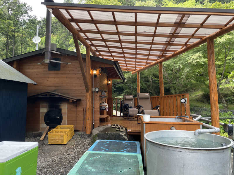 そのまま下道で1時間半、予約した13時前にてんからハウスに到着。おいちゃん手づくりの山小屋サウナ、川の水と井戸水を汲み上げた2つの水風呂に加えて、トイレと更衣室・浴場にシャワーまで1人で設えたのには度肝を抜かれた。日本の職人技、本当にすごいね!