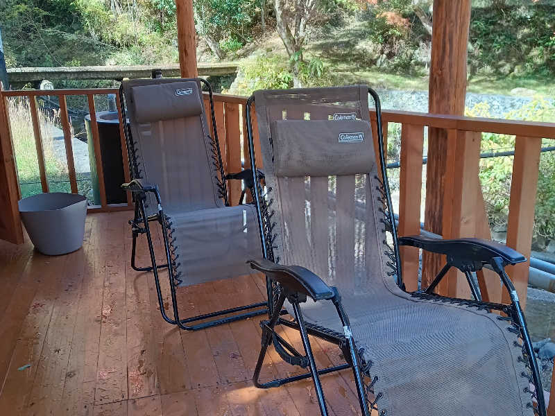 水風呂出てフラフラとリクライニングチェアで川のせせらぎを聴きながらまどろむ。