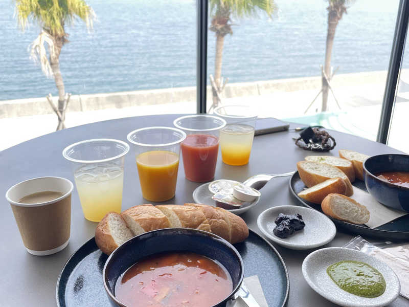 プールは海水だから、ベタつきがちょっと気になってしまうワタクシは遠慮したけど、実はプールサイドバーなどもあるみたいだから、次回はそういう季節に利用したいね。実は絶景サウナと別に女子専用コンテナサウナもあって、そっちはセルフロウリュもできるから、何度でも入りたくなるのよね。宿泊者は21時くらいまではサウナ行けるみたい(ホームページと室内の案内が微妙に違ってたから真相は不明)だし、日帰り利用もできるから、ちょっと足を伸ばしてみる価値あったね。夜は焚火で焼きマシュマロなんかもやってたよ。みんな好きだよね〜✨