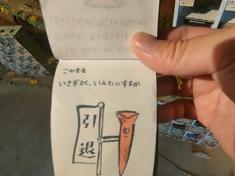 サウナは火がほぼ落ちていたので無料でいただく。温度計は50℃を指していた。たんまり深呼吸をして体温を熱くするイメージで10分ほど楽しむ。水風呂に行くが贅肉だらけな僕には全身浸かったらジャストフィットして二度と抜けられなさそうな気がしたので半身浴で楽しんだ。身体を拭いてソファーで扇風機を浴びたり、カランで水を被ったりすれば身体も自ずと冷えてくる。
