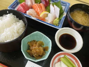 たっぷり7種類のお刺身!魚沼産コシヒカリ美味しい。小鉢と味噌汁も嬉しい