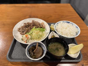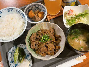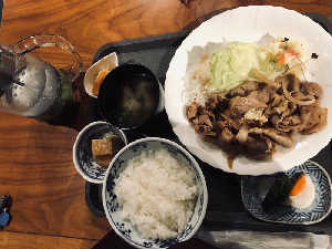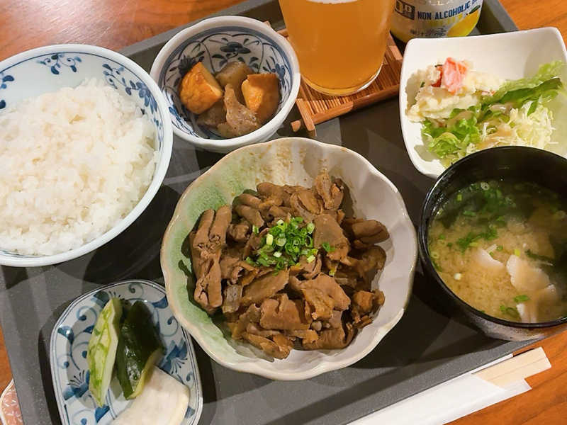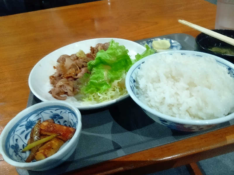 生姜焼きの生姜抜きverらしく、味付けはご飯に合う強め。 甘めの味付けもでも美味しそう