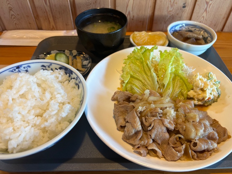 大好き生姜焼き❤️ デザートはりんご🍎をいただきました、お母さんありがとう!