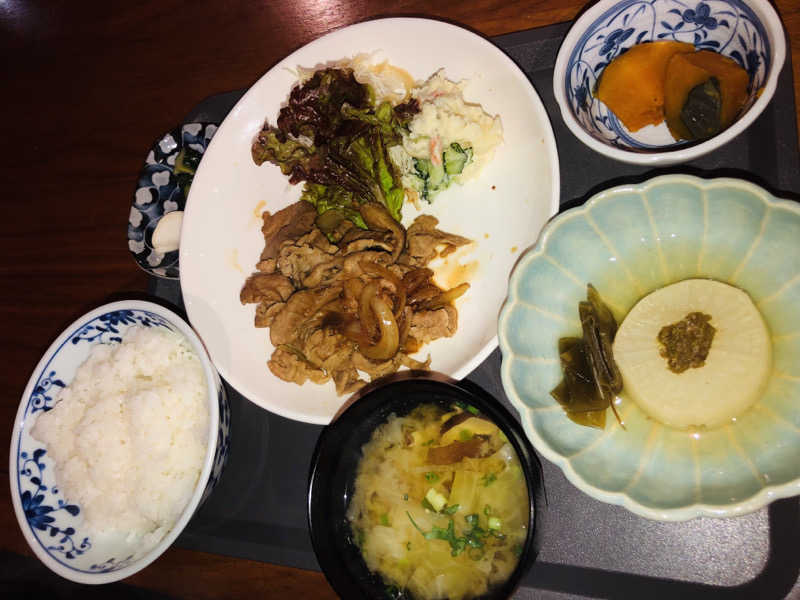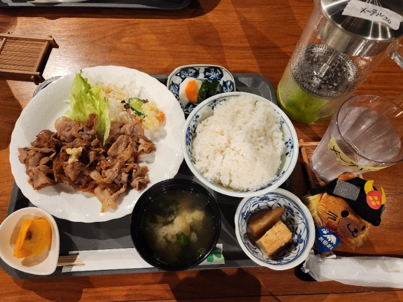 生姜焼きの生姜抜きverらしく、味付けはご飯に合う強め。 甘めの味付けもでも美味しそう