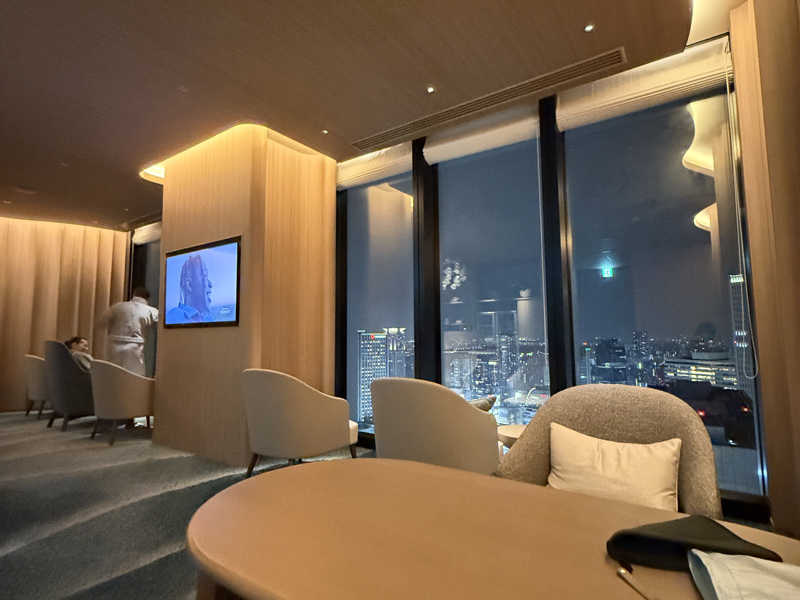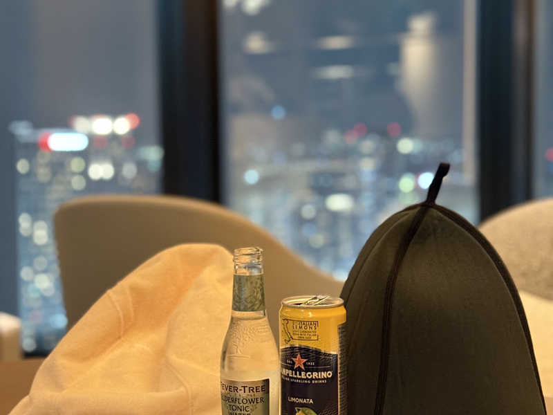 OFURO後に行ける専用ラウンジではドリンクを飲みながらくつろげ夜景を楽しむ空間が用意されている。