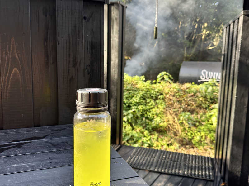 18時のエイキチさんによるソロウィスキング。カウンセリングから始まり、白樺・オーク・メイプルのウィスキング。ウィスクが心地良く、全身が森の香りと蒸気に包まれる。水風呂クールダウン後は焚き火前で休憩。炎の揺らめき、見上げる木々と夜空でバチバチにととのいました〜。レモングラスと紅茶と生姜のホットティーとドライフルーツが五臓六腑に染み渡りました。