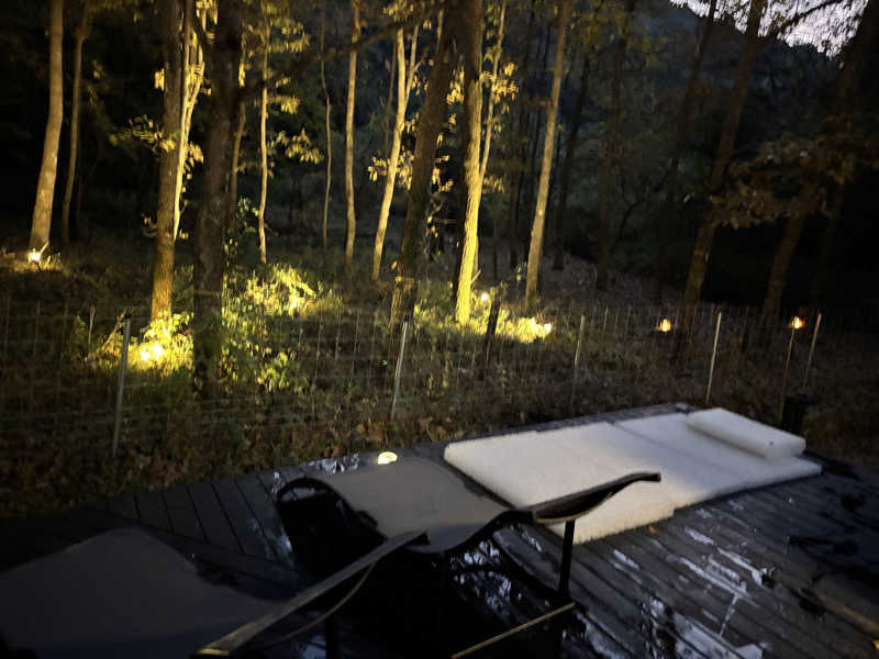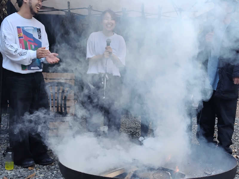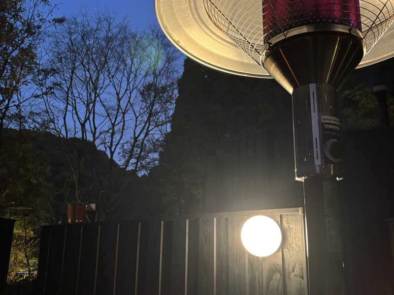 パラソルヒーターや焚き火、湯船もあって、寒くならないように、工夫がされていて、とても良かった✨